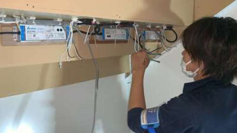 電気工事士として、照明の取り付けや配線工事、電気設備の施工を行います。